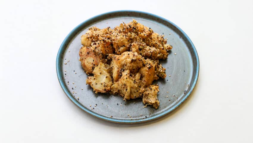 This miso roasted celeriac is one of the simplest and most flavourful ways to prepare celeriac. Slow-baked until deeply caramelised, then torn and finished with sesame, seaweed, and nigella seeds, it makes a delicious plant-based side or salad that pairs beautifully with Asian-inspired flavours. No oil. No added salt. The miso does all the work.